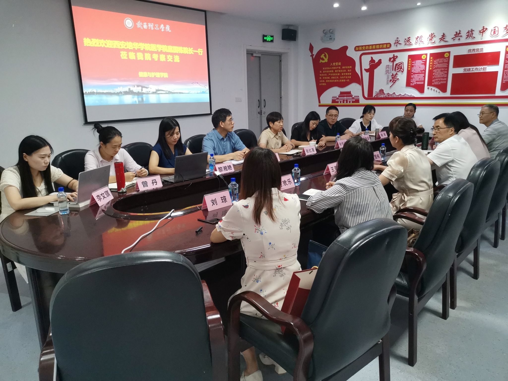 首先张红菱院长代表学院对扈国栋副院长一行的到来表示热烈欢迎,双方就参会人员作相关介绍。扈国栋副院长表达了对我院此次参观调研安排的满意和感谢,并表示此次交流的目的是借鉴我校在护理学、康复治疗学专业建设及人才培养模式、课程设置等方面的宝贵经验,加快西安培华学院医学院护理学、康复治疗学专业建设。