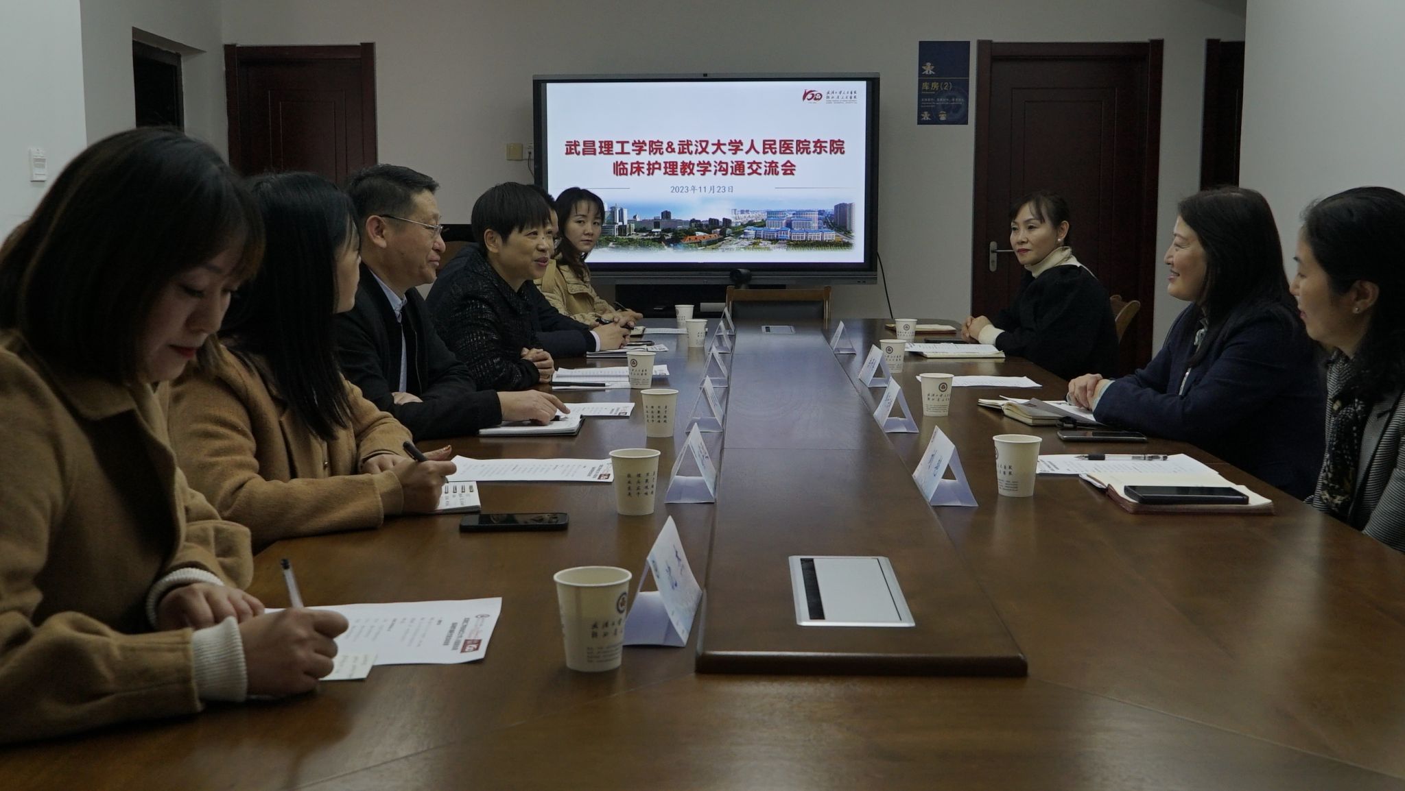 武汉大学人民医院东院副院长余开焕欢迎了学院领导老师一行的到来,并对学院实习生的优异表现给予了高度肯定;护理办公室主任刘艳对学生的实习教学工作做出了介绍,希望能有优质的学生留院工作;护理办公室副主任王荣指出,对实习生的培养既要有针对性,又要有侧重,需依据学生的实际情况来做好教学上的努力;最后,东院分党委书记做了总结讲话,因为学院的重视和支持,为学院和医院长期的合作建立了很好的契机,实习是合作的一个方面,未来也希望在师资的培训上建立合作关系。