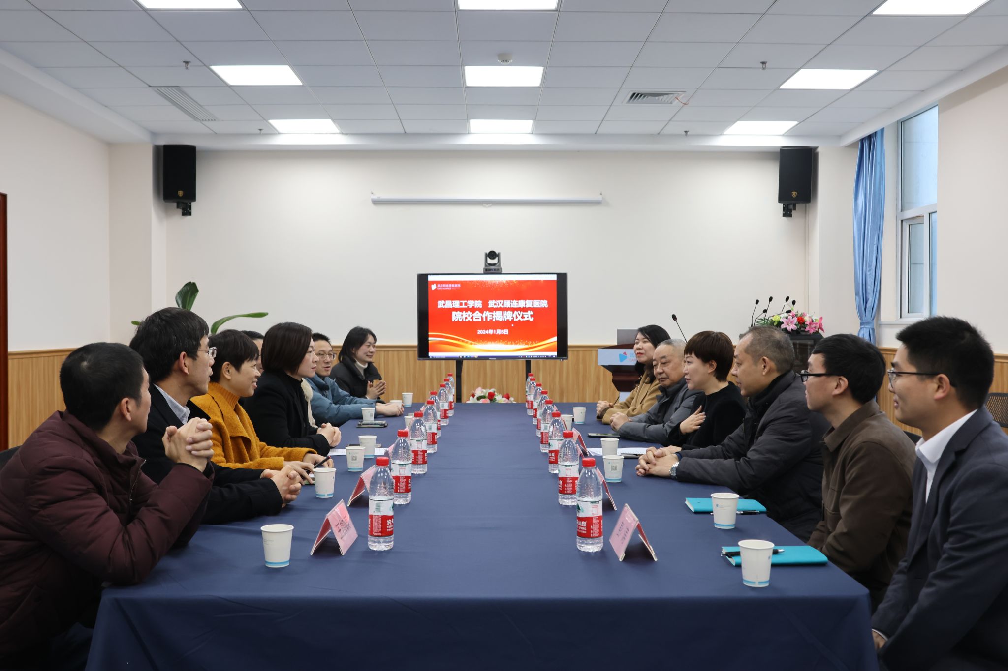 林娟对武汉顾连康复医院建立教学基地的大力支持表示感谢,并对学校的基础情况、细分专业、师资团队、科研成果、学生情况等方面进行了介绍,她表示:学校近年来在人才培养、教学改革、专业建设等方面取得了较好的业绩,学校着力推进医校协同育人,积极为学生成才与职业发展提供优质服务,本次院校合作标志着双方合作进入实质性推进阶段,影响深远!