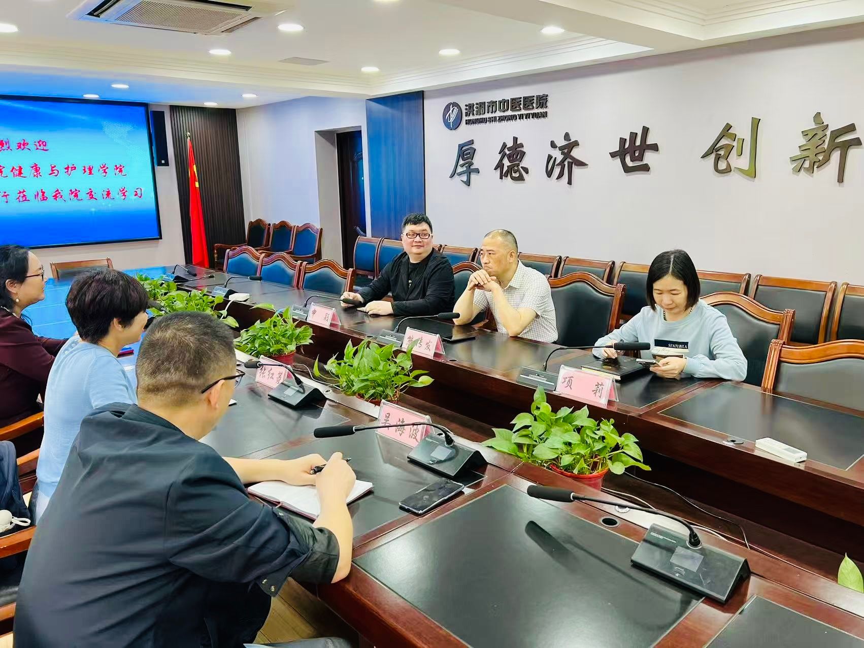 在实践教学与岗位需求对接环节,双方展开热烈讨论。吴海波副院长重点介绍了学院的实践教学体系:校内实训依托护理实训中心(模拟病房、基础护理实验室、急救技能实训室等),开展基础护理技术(如静脉输液、无菌操作)、健康评估、模拟急救等技能训练。他提出,希望与洪湖市中医医院合作建设标准化实习基地,为学生的毕业实习提供更为优质的平台。也进一步强化学生的实践教学,通过"双导师制"(学院教师+临床带教老师)联合指导学生,为学生以后进入临床工作奠定更为坚实的基础 。