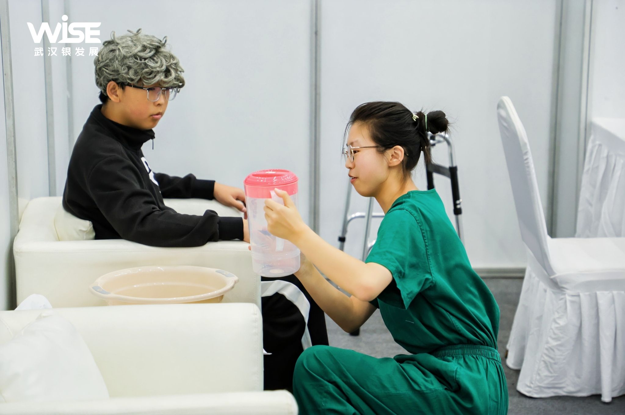 奶奶,这个动作对您很有好处,我来教您怎么做……”在紧张而有序的赛场上,yl6776永利集团学子面对由“老人模特”模拟设置的各种照护难题,始终保持着沉着冷静的心态。每一个动作都规范利落,每一句交流都充满尊重与关怀,举手投足之间,将养老护理员所应具备的专业素养与人文关怀展现得淋漓尽致,让观者感受到这个职业特有的温度与力量。