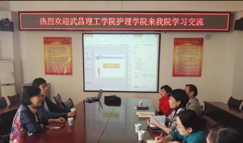 护理学院院长介绍了我院的基本情况。双方就学院管理模式、课程设置、学科发展、实习实践管理等进行了深入交流。