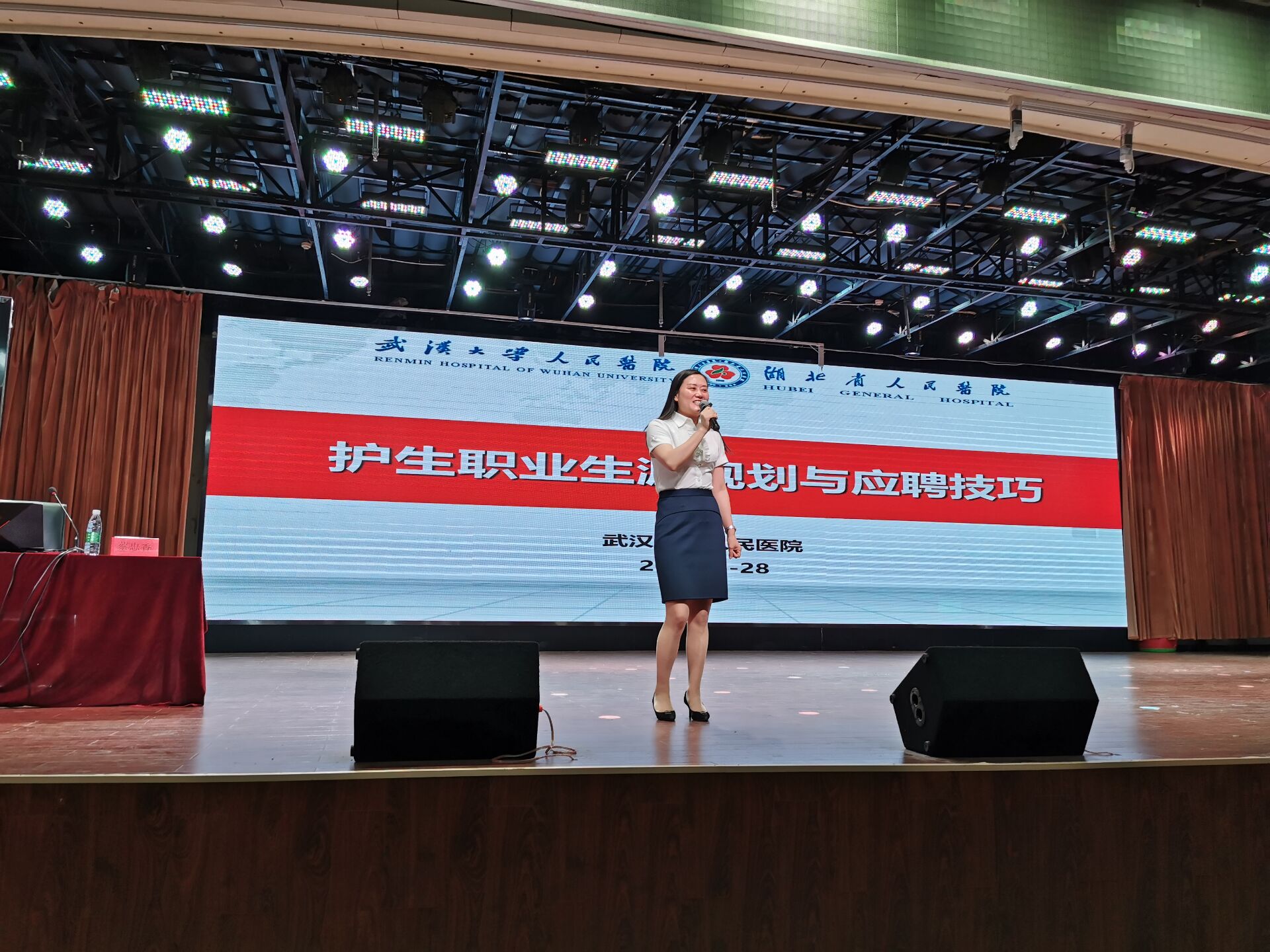 (通讯员 代思雨 报道)5月28日晚,湖北省人民医院护理部主任蔡忠香教授应邀来到yl6776永利集团护理学院,为700余名师生作了《护理行业发展状况和护生求职技巧》专题讲座。护理学院党总支常务副书记蒋国华,护理学院教学副院长李强,护理学院实践副院长陈红梅与师生一起聆听了讲座。