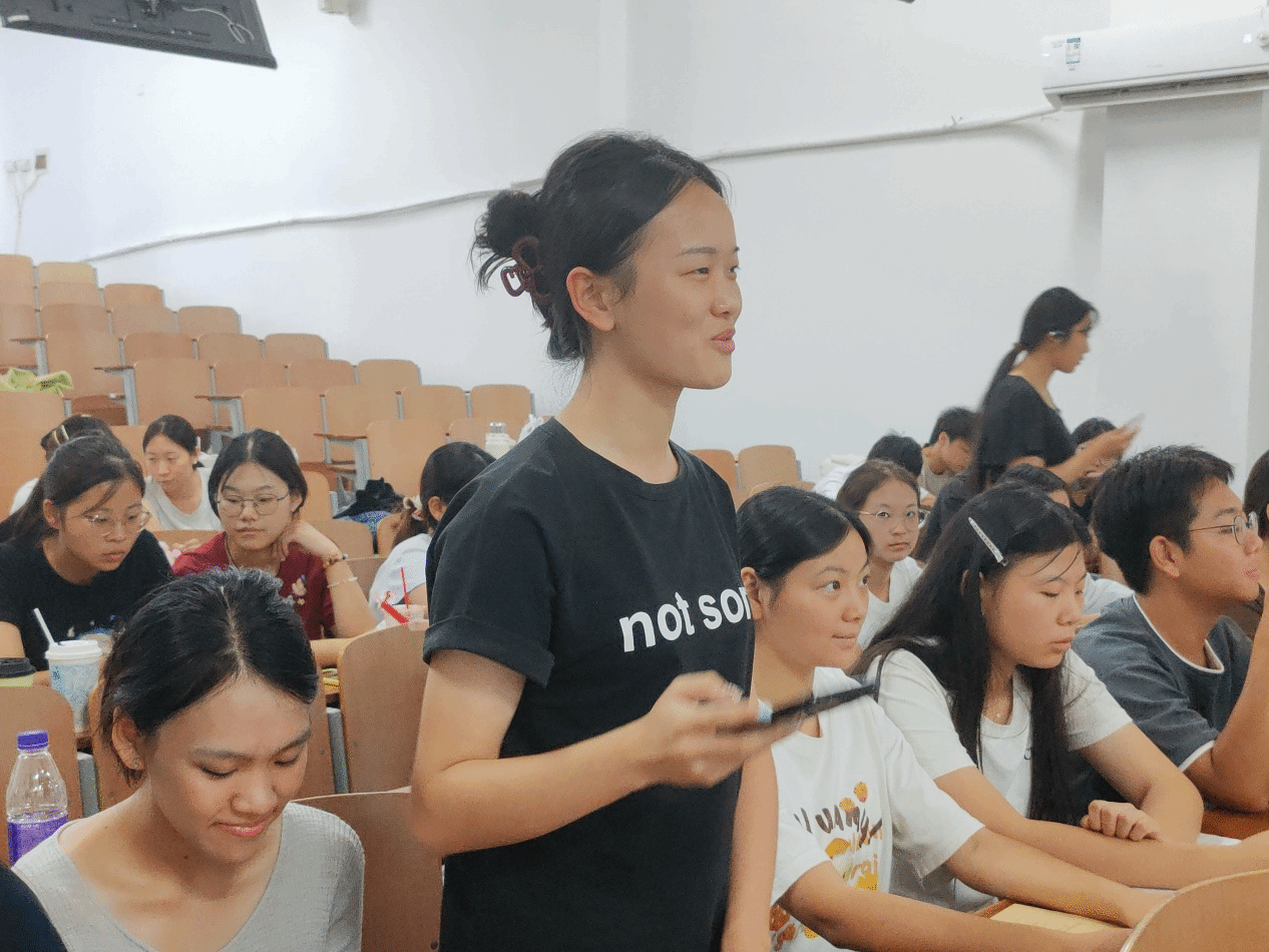 在互动环节,主讲人提出“大学生党员如何为国防建设出力”的问题,现场党员踊跃发言,有党员表示会主动参与校园国防宣传、红色故事宣讲,也有党员提到会以抗战精神激励自己精进护理专业,现场讨论氛围热烈。
