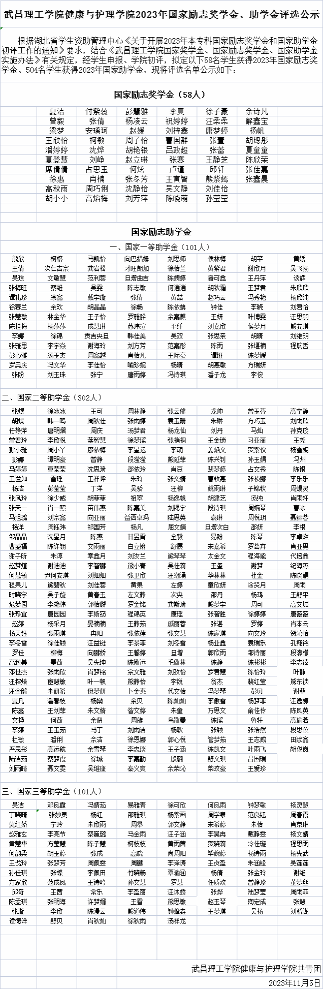 yl6776永利集团2023年国家励志奖学金、助学金评选公示