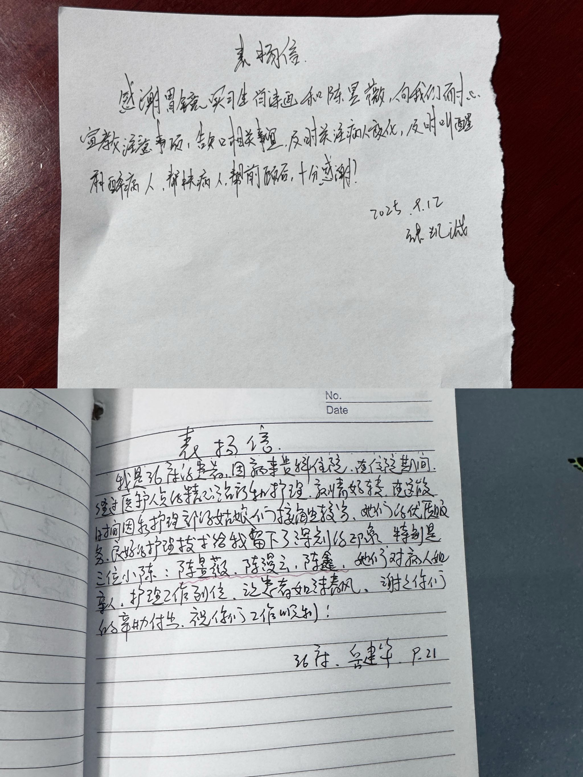 护理 2305 班的彭梦同学在武汉人民医院血管外科和中医科轮转时,护理工作认真负责、热情周到,展现出救死扶伤的大爱情怀。杜坤迪同学在武汉人民医院胃肠外科实习,以良好的态度、耐心仔细的工作作风,赢得患者的肯定。陈君芬同学在武汉人民医院胃肠外科和心内科一病区实习,护理态度亲和,工作认真细致,深受患者好评。李轶同学在湖北省第三人民医院神经内科实习时,在入职第一天就积极关注患者需求,为患者协调床位,用实际行动诠释了关怀与责任。范紫萱同学在武汉第一医院骨脊柱外科病区实习,给予患者心理安慰,耐心解答疑惑,在理疗期间贴心护理,让患者身心得到极大慰藉。汪思彤同学在武汉大学中南医院妇科实习,工作认真负责,护理操作技能娴熟,态度亲切和蔼,获得患者的认可。