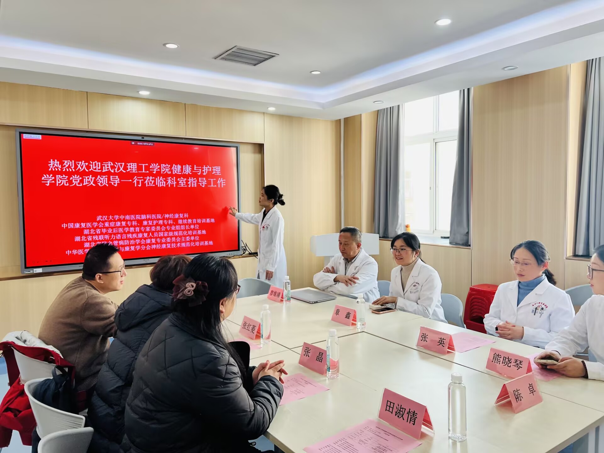 座谈伊始,武汉大学中南医院神经康复科主任章鑫等专家团队对学院一行的到来表示热烈欢迎,并详细介绍了科室的学科建设、临床诊疗特色、人才需求及实习带教体系,重点阐述了对康复专业复合型、实践型人才的培养期待。张红菱院长代表学院介绍了yl6776永利集团康复专业的设置、教学成果及“以岗位需求为导向,以实践能力为核心”的育人理念,强调学院始终注重将临床实践融入教学全过程,致力于培养适配行业发展的高素质康复专业人才。田淑情老师作为康复专业教师代表,就专业课程设置、实践教学环节设计等与科室专家进行了深入交流,双方围绕康复专业学生的临床技能培养、实习岗位适配、职业素养提升等核心问题展开热烈探讨。