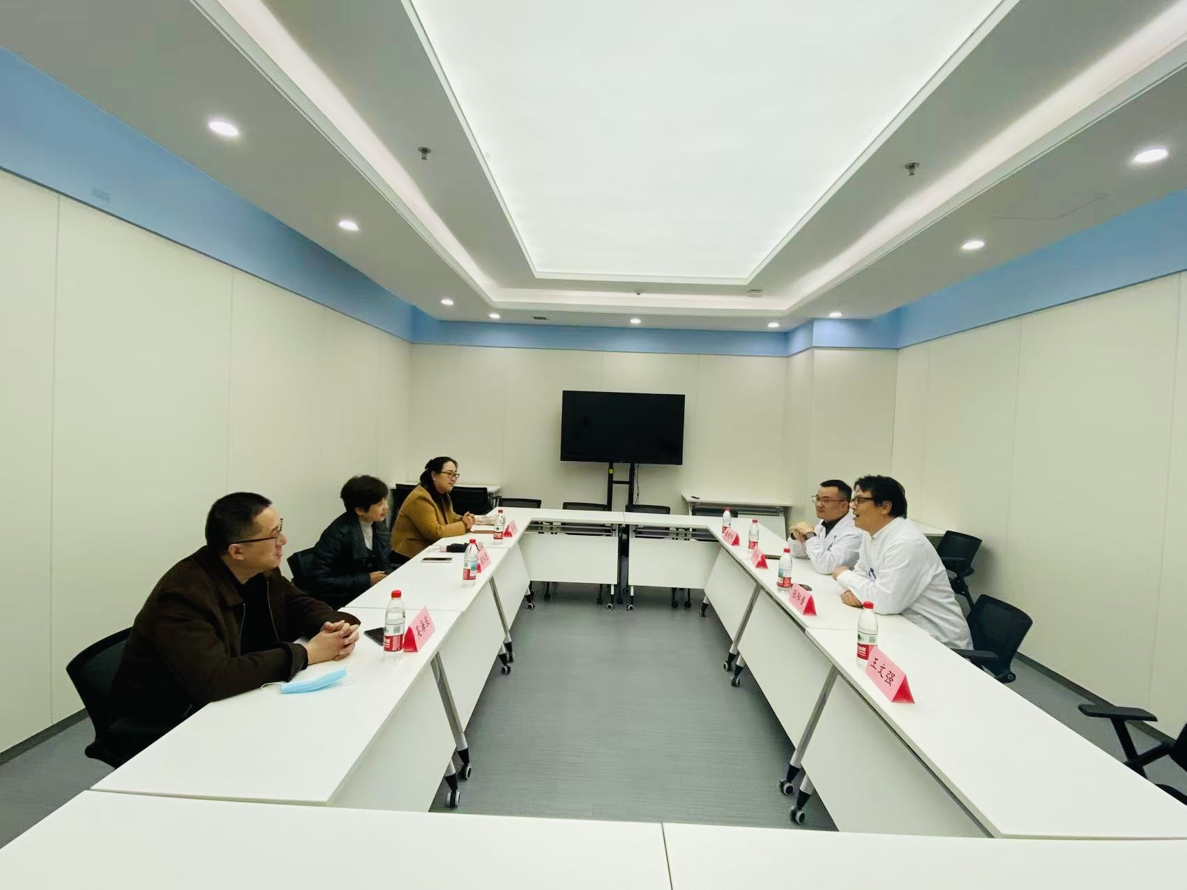 座谈会上,张阳普主任对学院一行表示热烈欢迎,介绍了医院学科建设、特色诊疗及人才需求情况,表达了深化校院合作的积极意愿。张伟治疗师长、王文强主管治疗师分别就康复护理岗位要求、实习带教安排、实践能力培养等内容作详细介绍,为学院人才培养提供了一线参考。