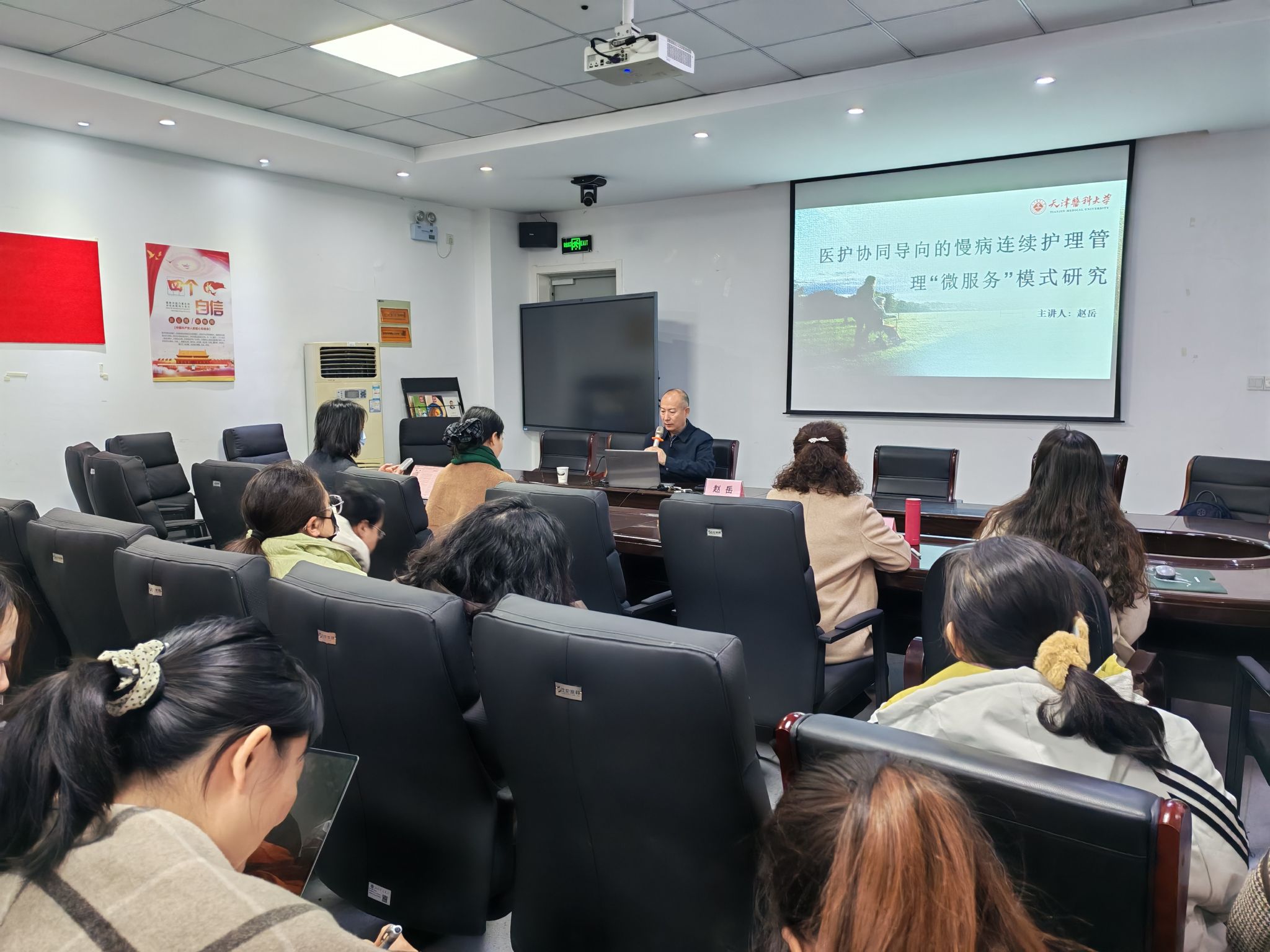 赵岳教授以《医护协同导向的慢病连续护理管理“微服务”模式研究》为题,围绕连续护理与积极老龄化领域的科研选题与项目申报展开系统阐述。他重点讲解了基金申报书的选题策略、国内外相关理论进展、现有服务模式的比较与反思、该领域面临的关键问题以及政策背景与导向,并引入“微服务”模式作为实现精准、高效护理服务的新思路,为在座教师申报科研基金提供了切实可行的指导与启发。